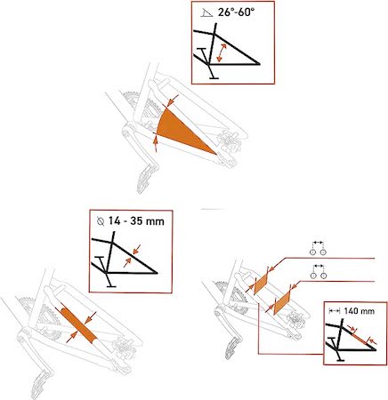 De bagagedrager is compatibel met zadelpennen tot en met een diameter van 33 cm en de achtervorkbuizen mogen maximaal 26 cm zijn.