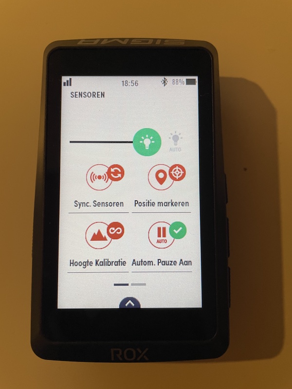 Maar niet getreurd, want je kan ook gewoon de knoppen gebruiken om van scherm te wisselen. Dit vond ik ook erg praktisch en dat is zeker iets wat ik bijvoorbeeld bij mijn “oude” Garmin Edge 830 echt wel mis sinds ik het bij deze ROX heb kunnen gebruiken.