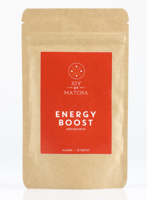 Deze Energy Boost Drink is een poeder van de eerder vermelde ingrediënten en wordt geleverd in een zakje van 60 gram, goed voor 30 porties energy boost!