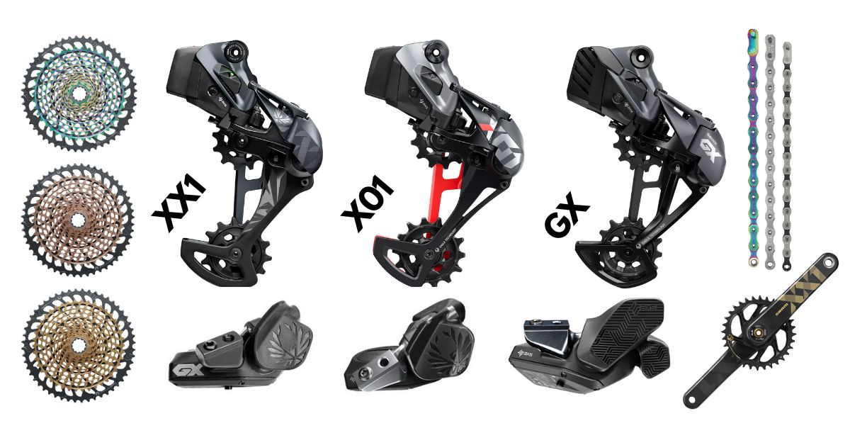 De volledige AXS groepsets (XX1 en X01) zijn natuurlijk peperduur maar kunnen uiteraard aangeschaft worden als je je mountainbike helemaal zelf opbouwt.