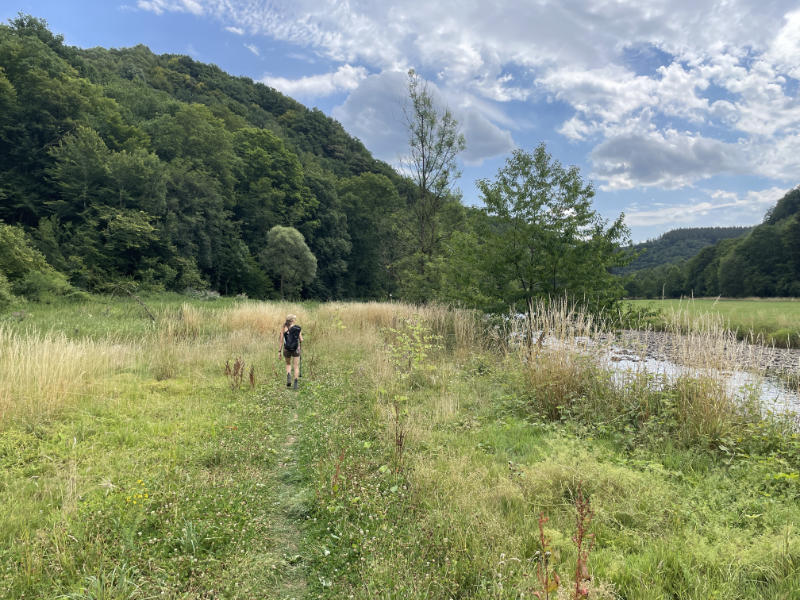 Maar eerst mochten we genieten van een oneindig en prachtig pad langs de Amblève. Wederom een ongerept stukje natuur waar de meeste toeristische wandelaars niet komen, want ook op dit pad was geen bepijling te vinden.